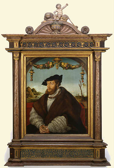 Herzog Ludwig X. war ursprünglich nicht für die Regierung bestimmt. Entgegen der von seinem Vater erlassenen Regelung, dass allein dem ältesten Sohn die Herrschaft im ungeteilten Herzogtum Bayern zustehe, konnte er im Jahr 1514 gegenüber seinem um zwei Jahre älteren Bruder Wilhelm seine Mitregierung durchsetzen. Während Wilhelm IV. in München residierte, wählte Ludwig X. die Burg Trausnitz zur Residenz und entwickelte sie zu einem Zentrum höfischer Kunst. Das Staatsporträt, das den Herzog kurz nach seinem Regierungsantritt darstellt, stammt von dort.