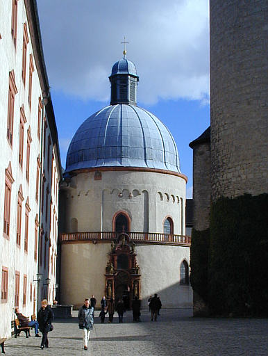 Der Rundbau stand ehemals frei im Schlosshof und wurde von Bischof