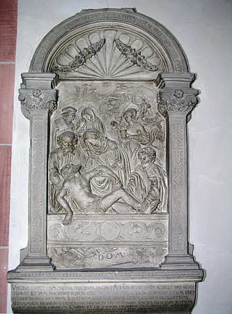 Noch gotisch empfundene Grablegung Christi in Renaissance-Rahmen,
