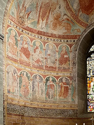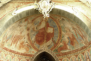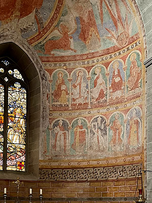 Der Chor besteht aus zwei Chorjochen mit einem Kruzifixus im Triumphbogen, die Chorapsis selbst enthält Wandmalereien aus dem ersten Drittel des 12. Jahrhunderts.