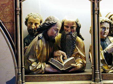 Schrein - Detail Schnitzarbeit von Sebastian Beychel Predella: Evangelisten