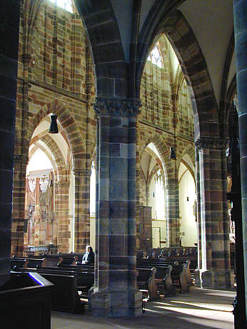 die eigentlichen Fenster wegen des Querschiffdachs nur sehr klein sein können.
