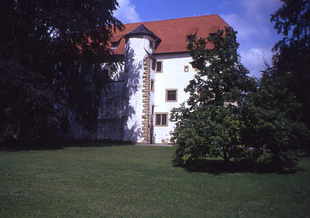 Treppenturm mit Zugang zu den oberen Geschossen, 1546 datiert.