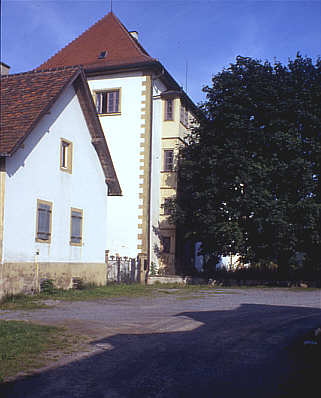 Das Schloss besteht aus zwei rechtwinklig aneinanderstoßenden dreigeschossigen Flügeln, die durch einen runden Treppenturm im inneren Winkel zugänglich sind. An der Eingangstür des Treppenturmes die Jahreszahl 1597, am Ostflügel 1596. Das Scbloss hatte ursprünglich an den Ecken vorspringende Türme auf viereckigem Grundriss.