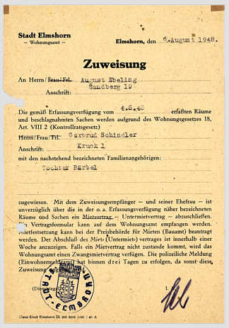 Wohnungskommissionen überprüfen den vorhandenen Wohnraum und ordnen Zwangseinweisungen von Flüchtlingen und Vertriebenen an.