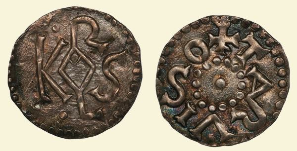 Silberdenar mit dem Monogramm Karls des Grossen aus dem Münzfund