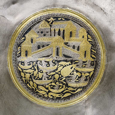 Das im Mittelmedaillon abgebildete Motiv einer Villa am