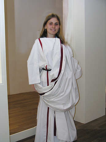 Hier eine römische Toga mit Purpurstreifen an den Seiten