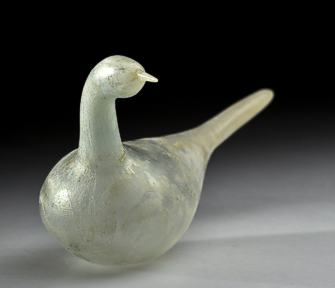 Bild oben: Antikes Salbgefäß in Vogelform.