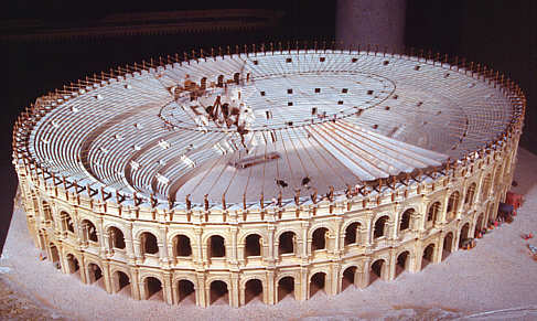 Modell des antiken Amphiheaters mit der Installation des Sonnendachs