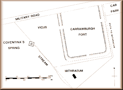 Carrawburgh Mithraeum lies 27.4m south-west of the Roman fort at Carrawburgh