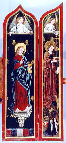 Linke Außenseite: Johannes der Täufer und die Heilige Margaretha mit dem Kreuzstab