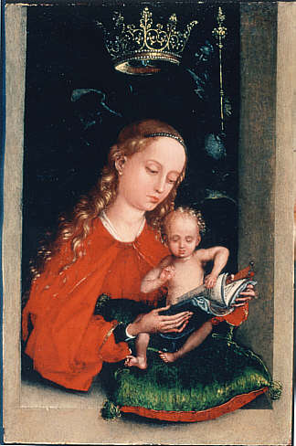 um 1485/1490 Schongauer hat immer wieder das liebevolle Zusammensein von Maria und dem Jesuskind in Bildern wiedergegeben, um das Geheimnis der göttlichen Heilsbotschaft zu veranschaulichen. Mit der Darstellung der Lehrmeisterin Maria und ihrem Kind bei gemeinsamer Lektüre stellt sich der Künstler in eine bereits lang bestehende Bildtradition, die von den niederländischen Malern schon ab 1430 aufgenommen wurde, was Gemälde von Rogier van der Weyden und Hans Memling belegen. |