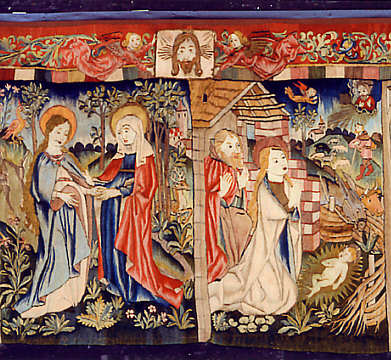 Detail: Heimsuchung und Geburt Christi (mittlere Felder)