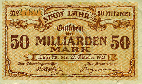 Notgeld der Stadt Lahr 27. Oktober 1923