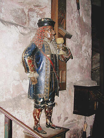 Holzfigur des Hofnarren Perkeo (19. Jahrhundert), der angeblich das Große Fass in einem Zug ausleeren konnte, im Fasskeller. Das stimmt natürlich nicht, legt aber Zeugnis ab von der Trinkfreudigkeit des Zwergs.