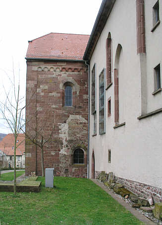 Nördliches Querschiff und Langhaus. Am Querschiff erkennbar der vermauerte Ansatz für das geplante Seitenschiff.