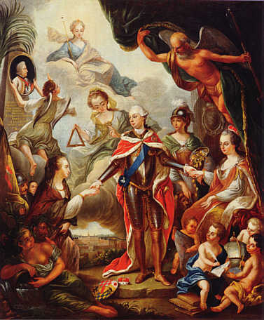 Allegorie auf die Vereinigung der badischen Landesteile 1771 Johann Wolfgang Hauwiller (1709 - 1786), 1771 Kloster Unserer Lieben Frau, Offenburg |