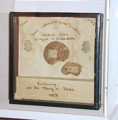 Erinnerung an das Hunger-Jahr 1817 Zwei Brötchen im verglasten Holzkasten, Valentin Gaier, Crailsheim, 1817 Stadtmuseum Crailsheim |