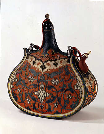 1550-1600, Istanbul Leder, Elfenbein, Horn, Silber und Metallfäden Höhe 29.5 cm, Weite 26 cm Hofjagd- und Rüstkammer, Kunsthistorisches Museum, Wien, C.28 Foto KHM, Wien