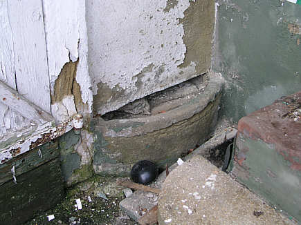 Im linken Schweinestall ist noch die originale Fütterung erhalten, durch die die Schweine im Stall von außen gefüttert werden kontnen.