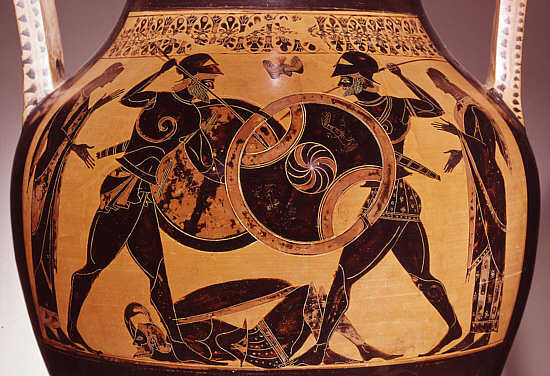 mit der Darstellung des Kampfes zwischen Achill und Memnon im Trojanischen Krieg Attisch, um 530 v. Chr. Badisches Landesmuseum Karlsruhe