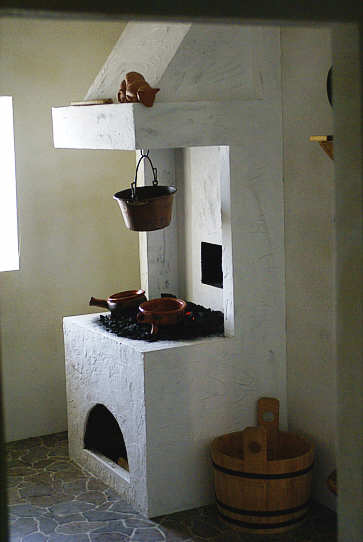 In der Küche wird über offenem Feuer gekocht und gebraten. Rauchschwaden durchziehen den Raum, aber er ist der wärmste in der ganzen Burg. Und hier gibt es immer etwas zu essen - wenn man sich mit der Köchin gut stellt.