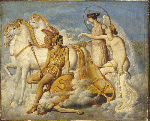 Jean Auguste Dominique Ingres (1780.1867), Vénus blessée par Diomède remonte au ciel. Um 1803, Öl auf Nussbaumholz