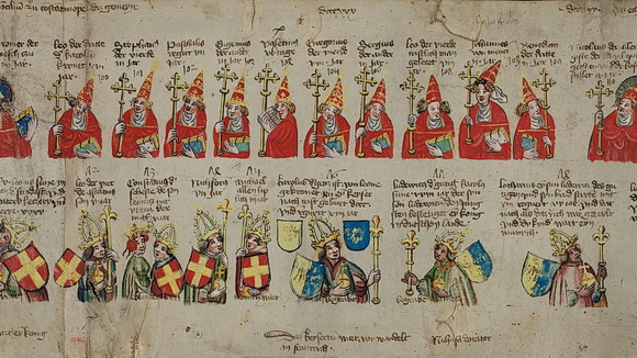Ein besonderer Höhepunkt ist der Papst-Kaiser-Rotulus, der in der Mannheimer Präsentation erstmals in seiner vollen Länge von 6,67 Metern zu bewundern ist. Er ist eine Leihgabe der Staatsbibliothek zu Berlin und entstand zwischen 1431 und 1433 vermutlich im Rhein-Main- Gebiet.