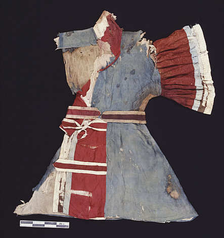 Das durch seinen Schnitt auffallende Seidengewand-Fragment