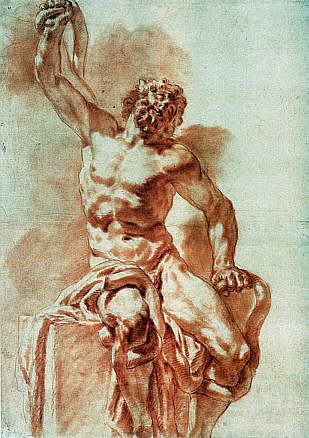 | Franz Anton Leydensdorff: Studie nach dem Laokoon, nach 1769 Die Zeichnung entstand nach dem 1731 aus Düsseldorf nach Mannheim gebrachten und im Antikensaal aufgestellten Gipsabguss der Marmorgruppe des Laokoon und seiner Söhne (Rom, Vatikanische Museen) mit der alten Ergänzung der Arme aus dem 16. Jahrhundert. |