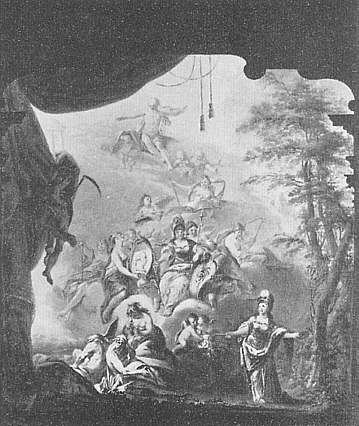 | Jranz Anton Leitensdorffer, (1721 - 1795): Verherrlichung des Kurfürsten Carl Theodor Ölskizze für den Bühnenvorhang des Hofopernhauses in Mannheim, 1772