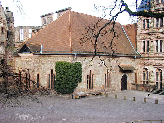 Neubau eines Wohngebäudes unter Ludwig V., im Erdgeschoss der "Königsaal" genannte Hauptfestraum des Schlosses. 1689 zerstört, unter Carl Theodor mit einem Dach versehen, um den noch genutzten Arbeitsraum der Küfer zu schützen.