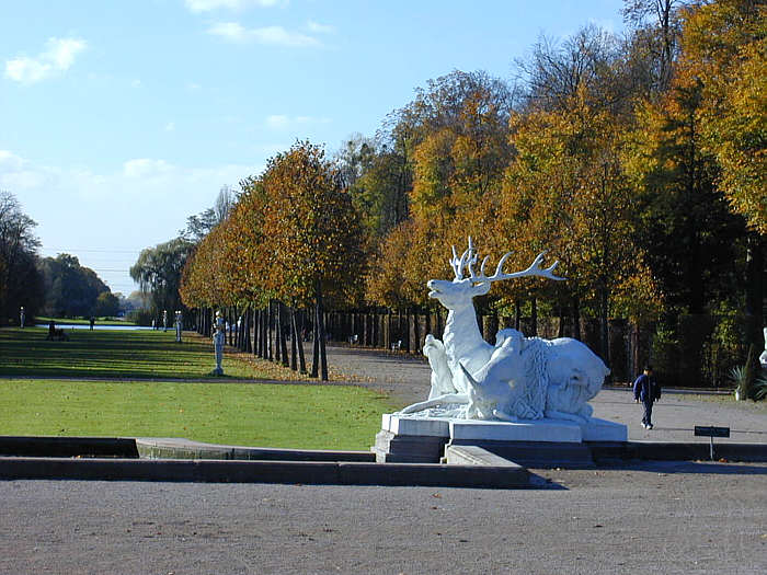 Sonne am Abend. Die Hirschgruppe steht daher im Westen des Gartenzirkels,