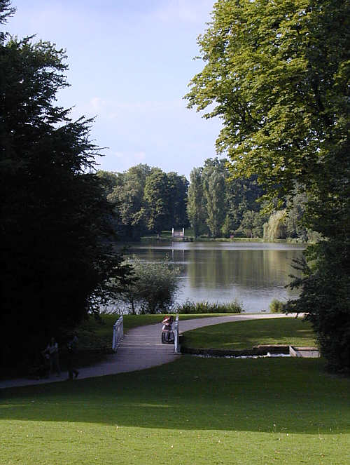 Blick vom Hügel des Merkurtempels über den Großen Weiher zur Chinesischen Brücke