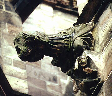 Wasserspeier dienten zunächst rein technisch dazu, das vom Dach kommende Wasser in einer Entfernung von der Mauer nach unten zu leiten, die dem Mauerwerk nicht schadete. Dann aber konnte sich die Fantasie des Bildhauers der Fratzenhaftigkeit bemächtigen.