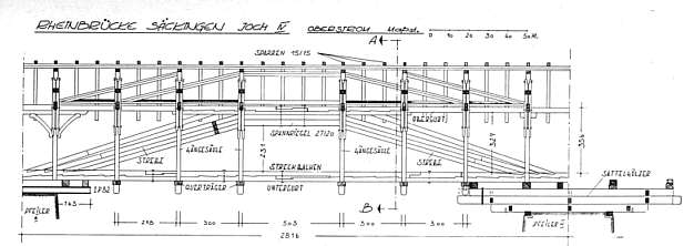 Schnitt durch das Joch 4 der Rheinbrücke mit Darstellung der Spann-Konstruktion