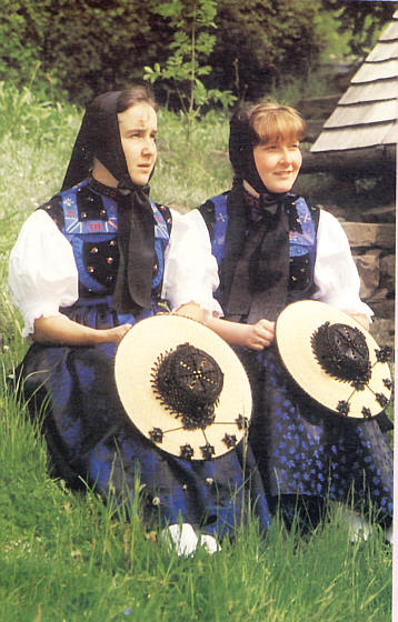 getragen wird. Der flache "Gupf" des Hutes ist mit schwarzen