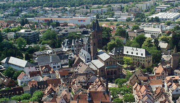 Schlossbezirk vom Turm der Burg Windeck aus gesehen. Im Zentrum