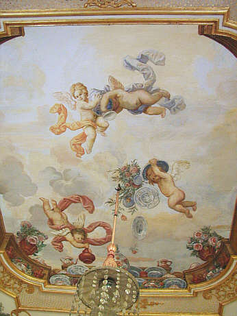 Appartement der Markgräfin Deckengemälde: Vier Putti mit blau-weißem Porzellangeschirr