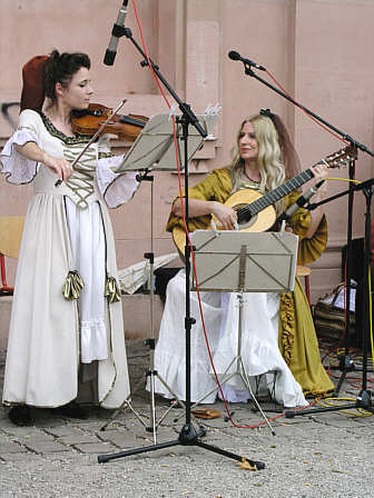 Dieweil sich die Hofgesellschaft im Garten verlustrieret, spielen zwei charmante Damen Sätze der neuesten Komponisten.