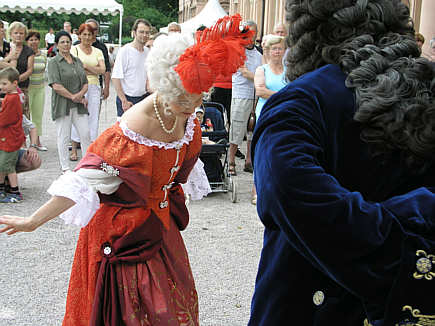 Seine Hochfürstliche Durchlaucht, Markgraf Ludwig Wilhelm von Baden-Baden, und Ihre Hochfürstliche Durchlaucht, Markgräfin Augusta Sibylla, bei einem stilvollen Solo-Tanz.