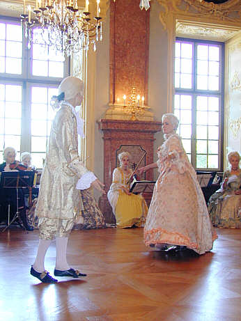 Mitglieder der Tanzgruppe Danzatori Palatini bei der Vorstellung höfischer Tänze als dem Spiegelbild der höfischen Rangordnung.