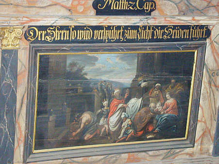 Bildfelder mit gereimten Lehrsprüchen: Der Stern, so wird verspüret/ zum Licht die Heiden führet