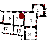 auf der Hofseite des Mitteltraktes, raumhoch mit grün lackierter