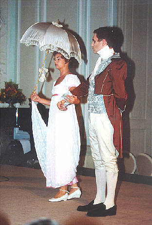 Kostüme des BiedermeierIm Gefolge der Französischen Revolution wurde die Kontur der weiblichen Kleidung schlanker, unter dem Rock wurde kein Reifrock mehr getragen und die Taille rutschte unter die Brust. |