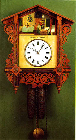 sog. Bahnhäusleform, um 1880 Ölmalerei auf Zinkblech "Die Mutter am Christabend" 1-Tage- Geh- und Schlagwerk