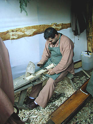 Natürlich heißt das nicht küfen, was der Küfer macht. Er macht Fässer oder andere Behälter aus Holz, genauer gesagt, aus Holzdauben, die hier in die richtige Form gebracht werden, ehe der Meister die zum Fass zusammensetzt