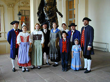 | Von links nach rechts: Lichtenthaler Bürger, Thermalwasserträgerin, Bäurin, (Bürger), junge, unverheiratete Frau, Bürgerssohn, Thermalwasserträgerin, Baden-Badner Bürger, Mädchen, Bürger | |||||||||