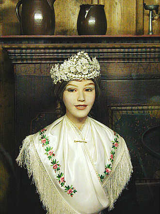 Mädchenkranz, dazu über der Brust gekreuztes Seidentuch